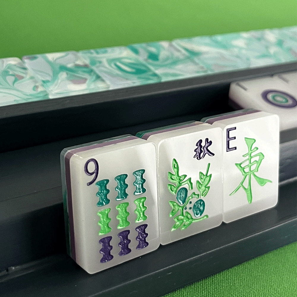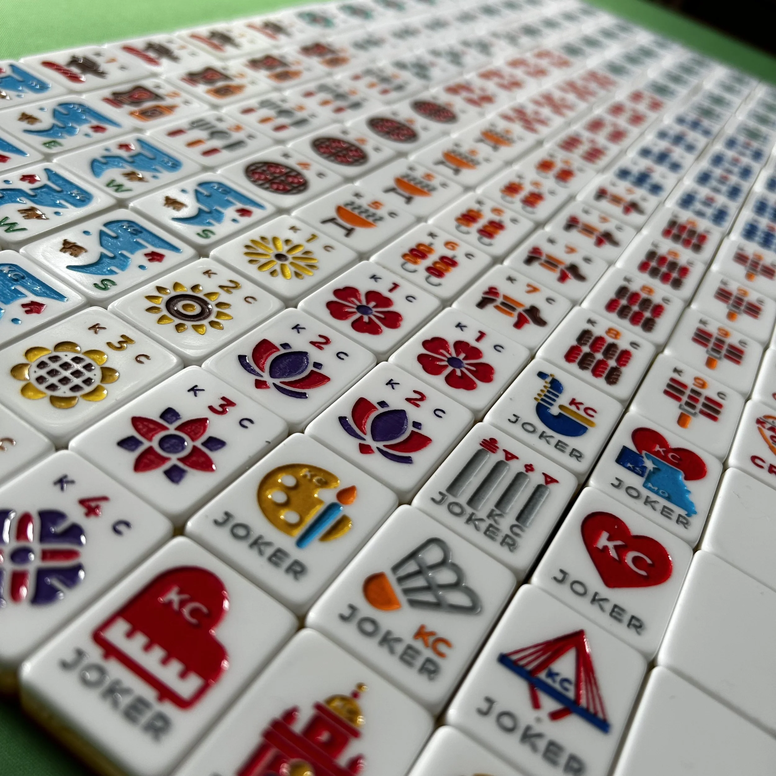 Kansas City $450.00 Ocean Swirl $375.00 Sold Out Tropical Blue $375.00 Wood Backed Sets $350.00 Monogram Backs $100.00 Custom Design Sets $600.00 Custom Jokers from $50.00 Sample Tile $15.00 Gift Card from $50.00